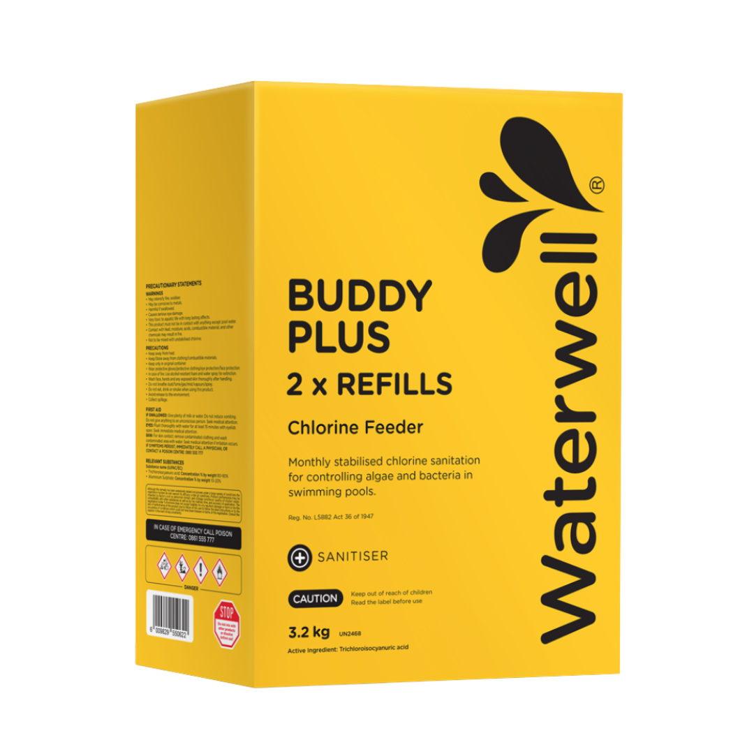 Keep your pool water sparkling clean and bacteria-free with the WaterWell Buddy Plus 5-in-1 Floater Refill (2-Pack). Designed specifically for use with the WaterWell Buddy Plus refillable chlorine dispenser, this twin-pack offers monthly stabilized chlorine treatment along with added clarifiers and UV protection for crystal-clear, healthy water.